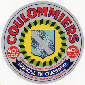 Antique, Unused, French Coulommiers Cheese Label, Metallic, Champagne
