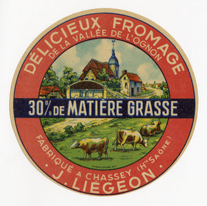 Antique, Unused, French Delicieux Fromage Cheese Label, Vallee de L'Ognon