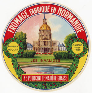 Antique, Unused, French Fromage Normandie Cheese Label, Les Invalides