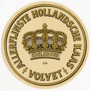 Antique, Unused, Dutch Allerfijnste Hollandsche Kaas Cheese Label, Crown, Volvet