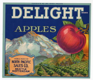 Vintage, Unused DELIGHT Brand Apple, Fruit Crate Label || Seattle, Rotterdam,