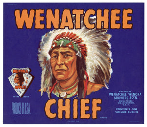 Vintage, Unused WENATCHEE CHIEF Brand Apple, Fruit Crate Label, Native American || Wenatchee, Washington