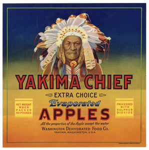 Vintage, Unused YAKIMA CHIEF Evaporated Apple, Fruit Crate Label, Native American || Yakima, Wa.