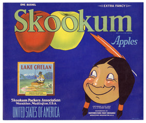 Vintage, Unused SKOOKUM Brand Apple Crate Label, Native American || Wenatchee, Wa.