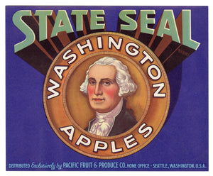 Vintage, Unused STATE SEAL Brand Apple Crate Label, George Washington || Seattle, Wa.