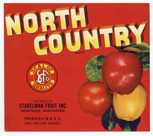 Vintage, Unused NORTH COUNTRY Brand Apple Crate Label || Wenatchee, Wa.