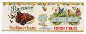 Vintage, Unused, Beautiful BUTTERFLY Brand Red Kidney Beans Can Label, New York