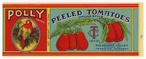 Antique, Unused POLLY Brand Peeled Italian Style Tomatoes Can Label, Parrot || Donna, Texas