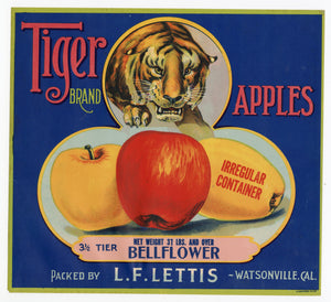 Vintage, Unused TIGER Brand Apple Crate Label, Bellflower || Watsonville, Ca.