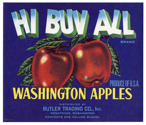 Vintage, Unused HI BUV ALL Apple, Fruit Crate Label || Wenatchee, Washington