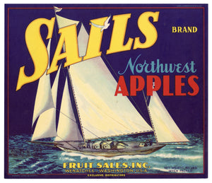 Vintage, Unused SAILS Brand Northwest Apple, Fruit Crate Label || Wenatchee, Washington