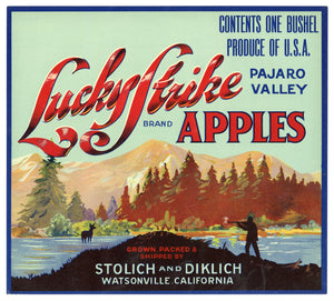Vintage, Unused LUCKY STRIKE Brand Apple, Fruit Crate Label, Hunter, Deer || Watsonville, Ca.