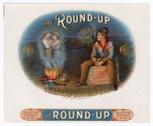 Antique, Unused THE ROUND-UP Brand Cigar, Tobacco Crate Label SET, Pioneer, Cowboy