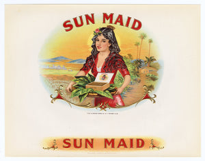 Antique, Unused SUN MAID Brand Cigar, Tobacco Caddy Crate Label SET of Three