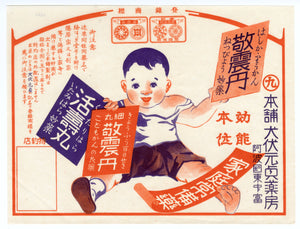 Antique, Unused Japanese Cough Syrup, Children's Medicine Box Label, Advertisement, Inubushi Genki