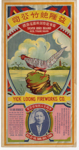 Vintage, Unused Chinese Yick Loong Fireworks LABEL ONLY || Silver Bird Brand