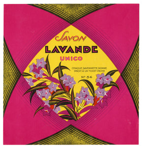 Vintage, Unused, French Art Deco SAVON LAVANDE French Soap Label || Unico