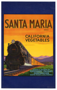 Vintage, Unused SANTA MARIA Brand Vegetable Crate Label || Santa Maria, Ca.
