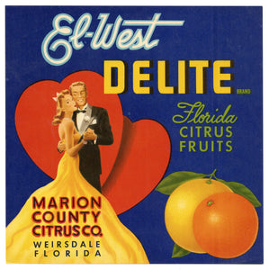 Vintage, Unused EL WEST DELITE Orange, Citrus Crate Fruit Label Set of Two || Weirsdale, Fla.