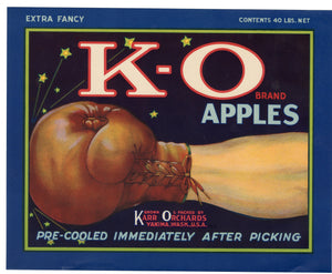 Vintage, Unused K-O Brand Apple Fruit Crate Label || Yakima, Washington