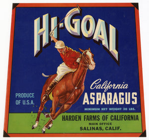 Vintage, Unused HI-GOAL Asparagus Vegetable Crate Label, Polo || Salinas, Ca.