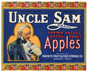 Vintage, Unused UNCLE SAM Brand Apple, Fruit Crate Label || Wapato, Washington