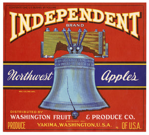 Vintage, Unused INDEPENDENT Brand Apple Crate Label, Liberty Bell || Yakima, Washington