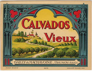 Antique, Unused, French CALVADOS VIEUX LABEL, Hard Cider, Castle, Brunoy, Brandy