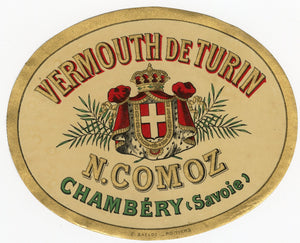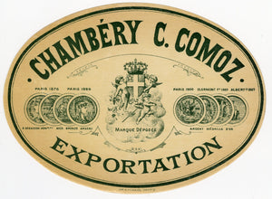 Antique, Unused, French CHAMBERY C. COMOZ VERMOUTH LABEL, Exportation