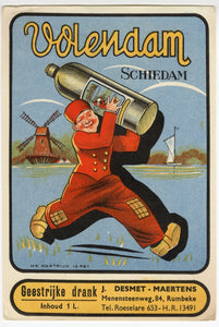 Antique, Unused, Dutch VOLENDAM SCHIEDAM Label, Alcohol, Gin, Windmill