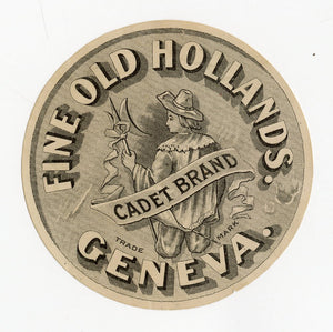 Antique, Unused FINE OLD HOLLAND'S GIN LABEL, Cadet Brand, Geneva