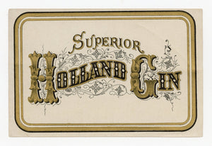 Antique, Unused SUPERIOR HOLLAND GIN Paper LABEL, Gold Embellishment