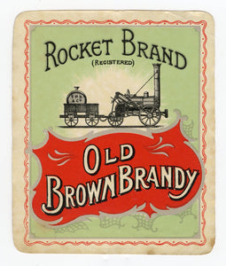 Antique, Unused Rocket Brand OLD BROWN BRANDY LABEL, Two Colors, Alcohol