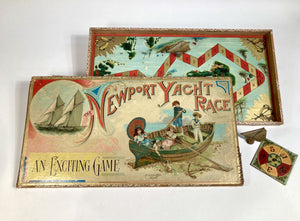 Antique 1891 NEWPORT YACHT RACE Children's Board Game, Sailing Toy Box