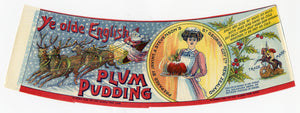 Antique, Unused Olde English PLUM PUDDING Can Label, Christmas, Santa Claus