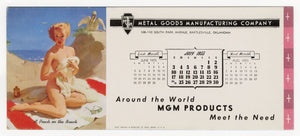1955 July Vintage, Unused Gil Elvgren "Peach on the Beach" Pinup Advertising Blotter