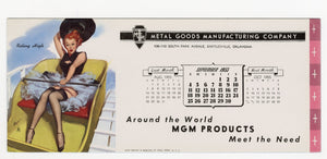 1955 September Vintage, Unused Gil Elvgren "Riding High" Pinup Advertising Blotter