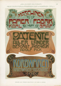 Antique German Art Nouveau Printing Sample Plate/ Page, Modern Fonts and Signs  - Regular price
