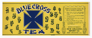Vintage, Unused BLUE CROSS TEA Label Wrapper, Chinese Import, New Orleans  - Regular price