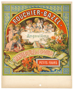 Vintage, French, Unused ROUCHIER-BAZEL Biscuit Cookie Label, Children Drinking and Smoking  - Regular price