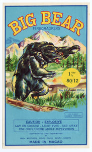Vintage, Unused, Chinese BIG BEAR Fireworks Cracker Crate LABEL ONLY, Macau, NOS  - Regular price