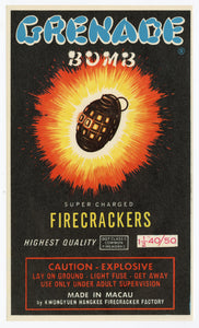 Vintage, Unused, Chinese GRENADE BOMB Fireworks Cracker Crate LABEL ONLY, Macau, NOS  - Regular price