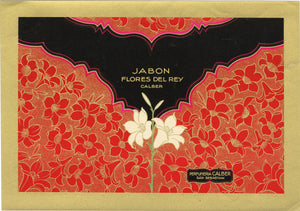 Vintage, Unused, Spanish Art Deco FLORES DEL REY Soap Box Label SET of Two