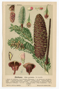 Antique German Nature ABIES PECTINATA Illustrated Book Page, Print, Silver Fir Tree, Pine Cone